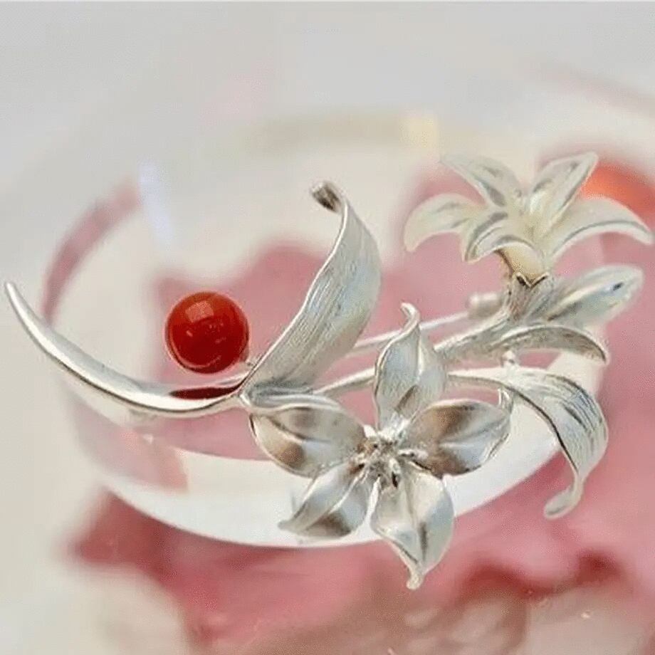 SV地中海サンゴ/白蝶貝ブローチ